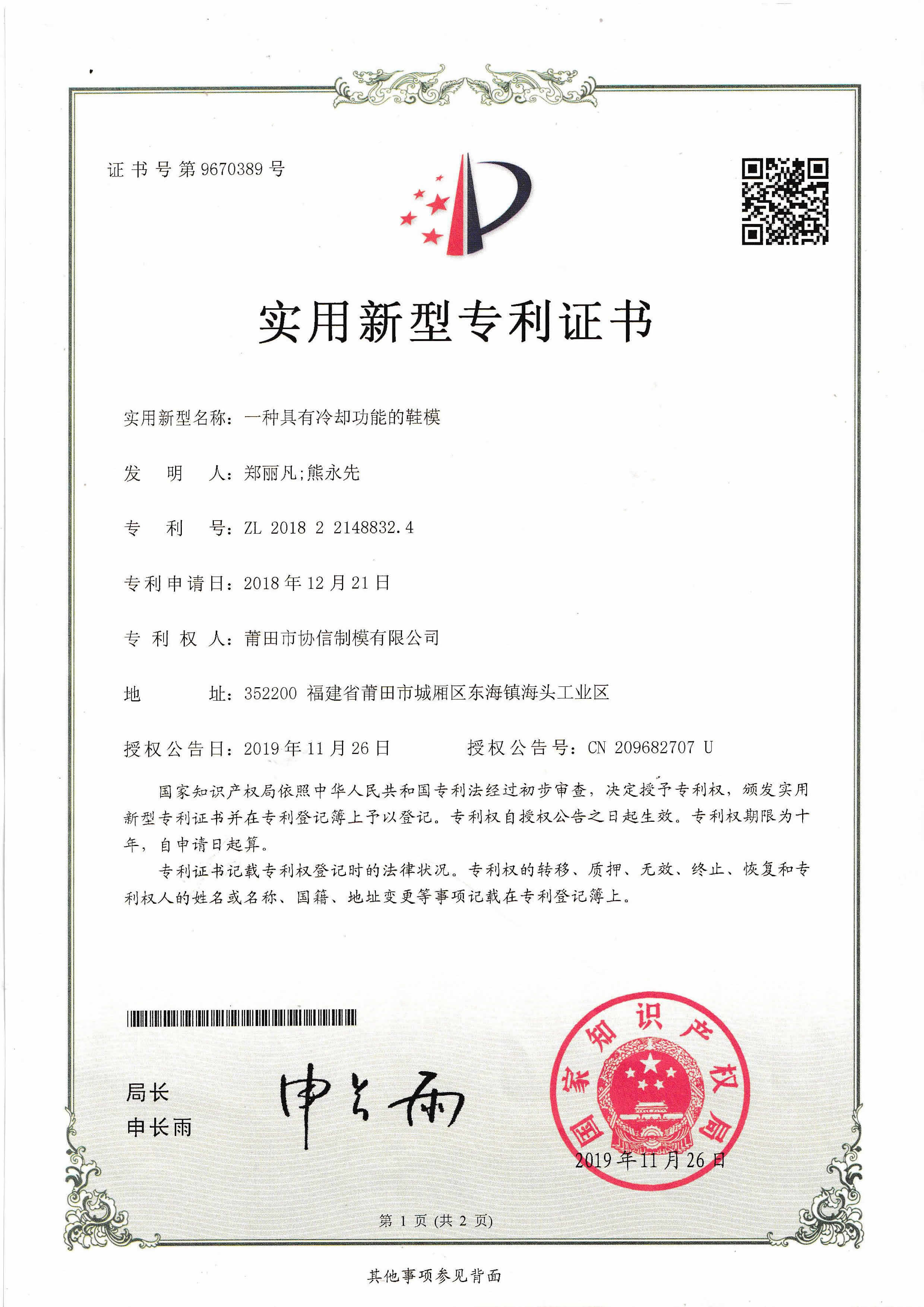 2個(gè)發(fā)明專(zhuān)利證書(shū)...